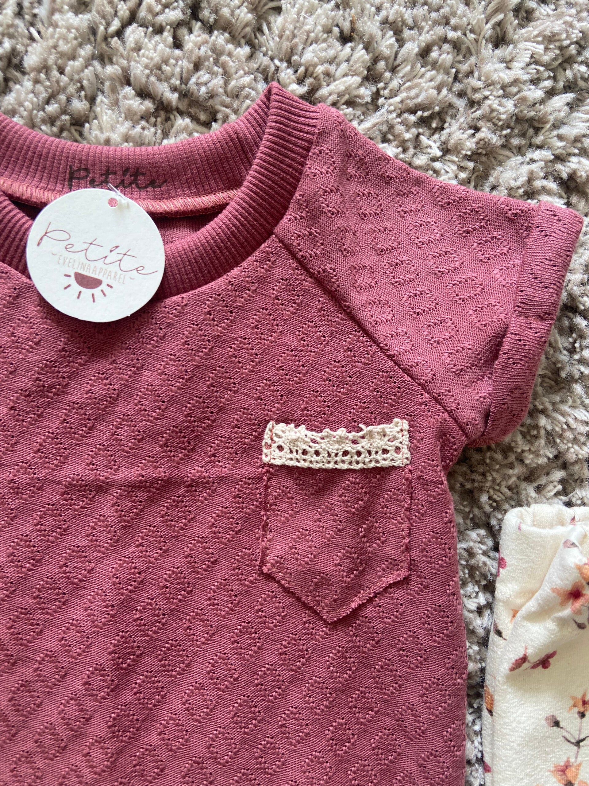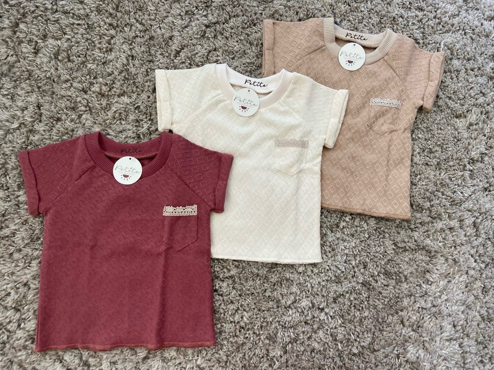 Dit hele mooie gezellige t-shirt heeft een mooie frambozen kleur. Het t-shirt is voorzien van een randje met kant op het borstzakje wat hem luxe maakt.